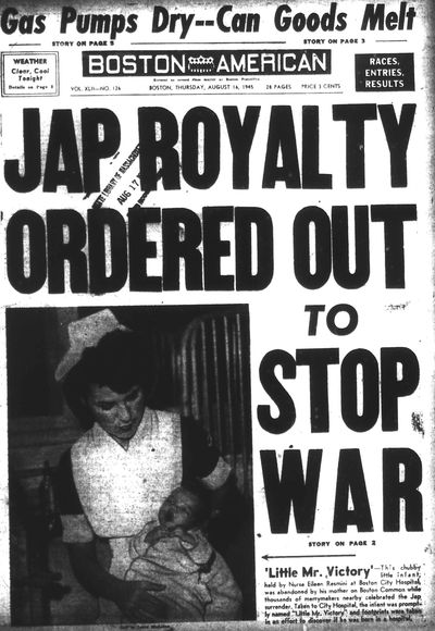 After three and a half years of bloody sacrifice Japan was surrendering. World War Two was over. Gas rationing was lifted and thousands got into their cars, and poured into Boston where they drank, danced, paraded and prayed well into the night. The Hub had never seen such a party. The next day (hangovers be damned) they did it all over again, jamming the city's streets with even louder, more joyful abandon, as we can see in this U.S. Signal Corps movie we uncovered in the National Archives: