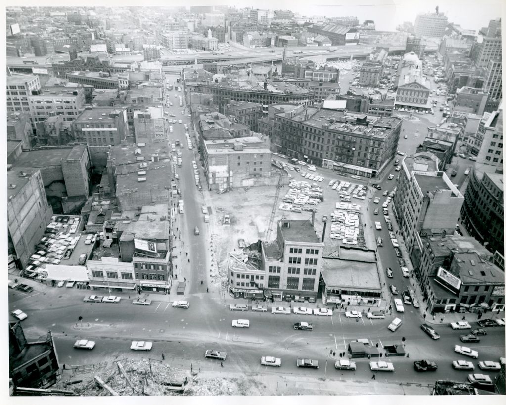 A fine aerial view of Scollay Square in mid-1962. Note the buildings across Cornhill from the Sears Crescent Building